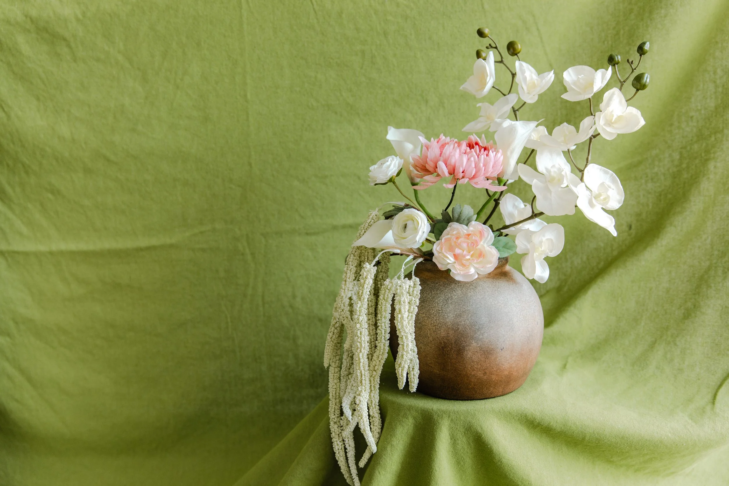 Inspired by soft spring mornings and the quiet beauty of natural light, this set was designed to feel calm, intentional, and effortlessly elevated. Muted greens, layered textures, and delicate florals come together to create a space that enhances without distracting—allowing every moment to take center stage.